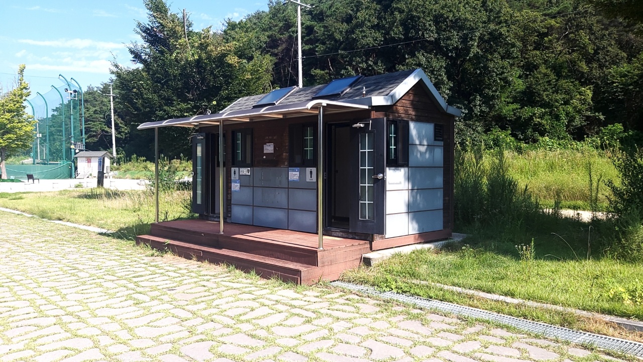 사이트 간격도 좋은 노지 캠핑지에서 이만한 화장실과 개수대라면